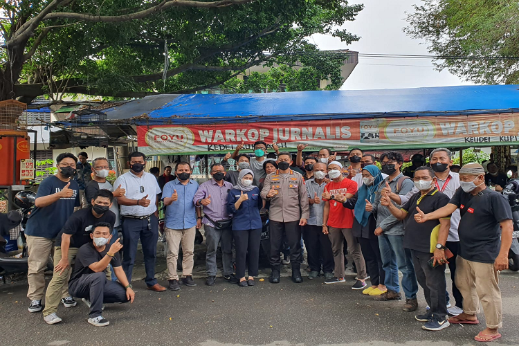 Kedatangan Kapolrestabes Medan bersama Kabid Humas Polda Sumut Kombes Pol Hadi Wahyudi di Warkop Jurnalis disambut wartawan senior Josmarlin Tambunan, Resi Erlangga, Husni Lubis, Fahrudin Pohan/Kocu, Harizal dan para jurnalis.