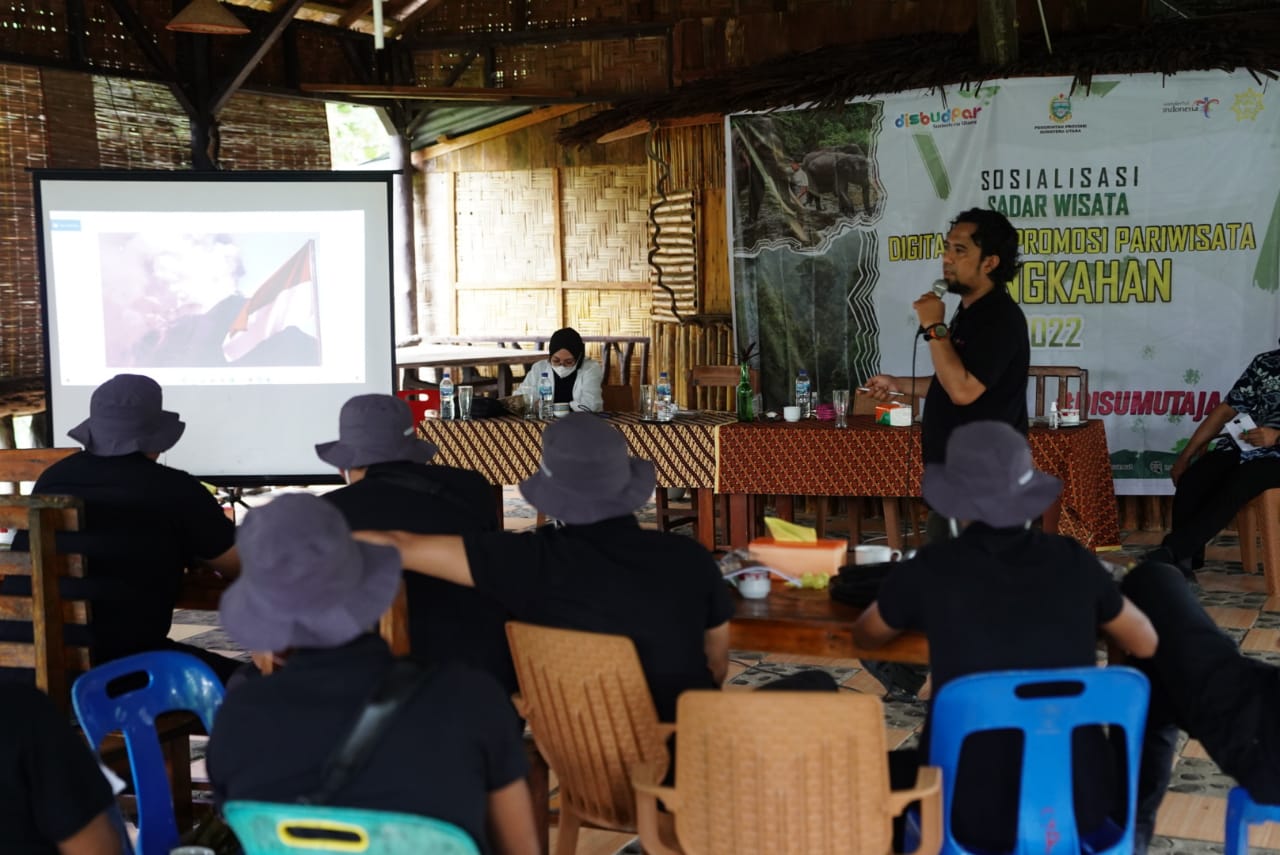 Bukit Lawang, Matawaktu.co.id – Dinas Kebudayaan dan Pariwisata (Disbudpar) Provinsi Sumatera Utara memberikan pembekalan pelatihan digitalisasi promosi pariwisata kepada pengelola/pelaku pariwisata di Bukit Lawang dan Tangkahan (Bulangta) untuk meningkatkan kompetensi, pengetahuan dan motivasi agar pengelola dapat memanfaatkan teknologi informasi dan komunikasi dalam pemasaran pariwisata.