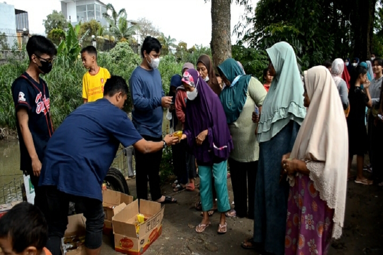 Pembagian Minyak Goreng oleh Kelompok Pemuda Milinial di bantaran Sungai Deli