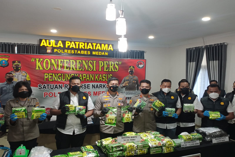 Medan, Matawaktu.co.id – Tim gabungan Satuan Narkoba Polrestabes Medan dan Polsek Medan Helvetia kembali bongkar penyelundupan narkotika jaringan internasional jenis sabu-sabu sebanyak 58 kilogram lebih dan pil ekstasi 3.340 butir di berbagai tempat di Medan.