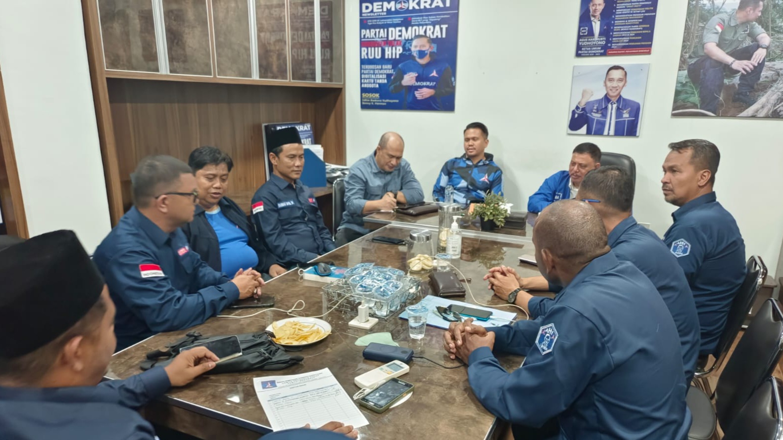 Jarot Agung Sumbogo bertemu dengan BPJK DPP Partai Demokrat didampingi oleh Wakil Ketua Umum RMA Gerald Patti, Wakil Bendahara Umum Siti Fadhilah, dan Komandan Satgas Arifandra Lubis.