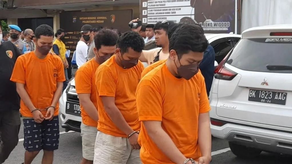 “Lima orang kita tetapkan sebagai tersangka kasus penganiayaan yang menyebabkan satu orang meninggal di Jalan Kapten Sumarsono,” kata Kapolrestabes Medan Kombes Pol Valentino Alfa Tatareda SH SIK didampingi Waka Polrestabes Medan AKBP Yudhi H Setiawan saat menggelar konferensi pers di Mapolrestabes Medan, Minggu (27/11/2022) sore.