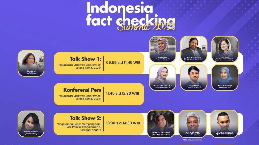 “Pemilu serentak 2024 memberikan tantangan lebih besar terhadap jurnalis dan pemeriksa fakta dibandingkan pemilu sebelumnya. Oleh karena itu, Fact-checking Summit ini menjadi forum yang tepat untuk merefleksikan dan menyatukan langkah untuk bersama-sama mendorong komitmen multipihak agar menyediakan informasi yang penting dan akurat bagi publik,” kata Adi Marsiela.