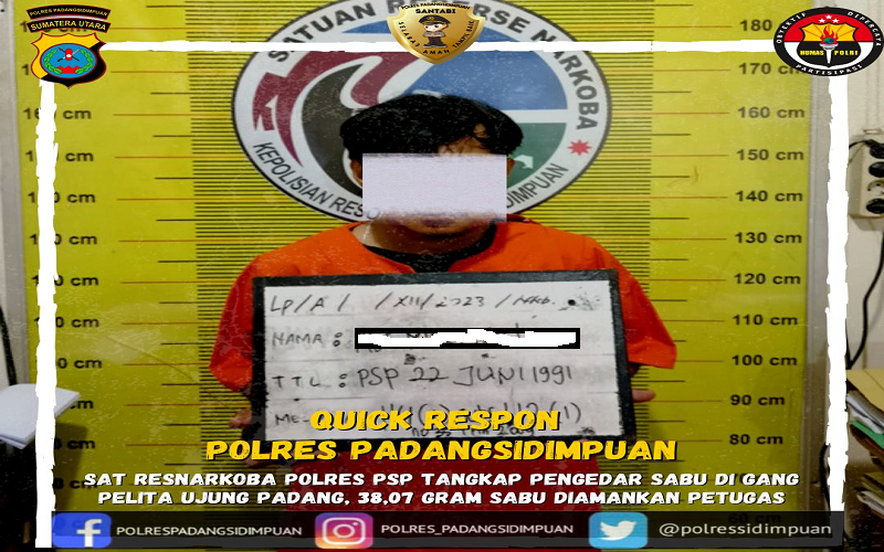 Setelah mengantongi informasi tersebut, Selanjutnya kasat Res Narkoba Polres PSP ,AKP Jasama H sidabutar SH Memerintahkan personil di pimpin kanit 1 Satres Narkoba Ipda Dilwan Hasibuan untuk melakukan serangkaian upaya penyelidikan hingga akhirnya menangkap terduga pelaku berinisial ADL Alias Ibel (32) yang menguasai 8 paket sabu Seberat 38,07 gram , yang siap diedarkan tersebut.