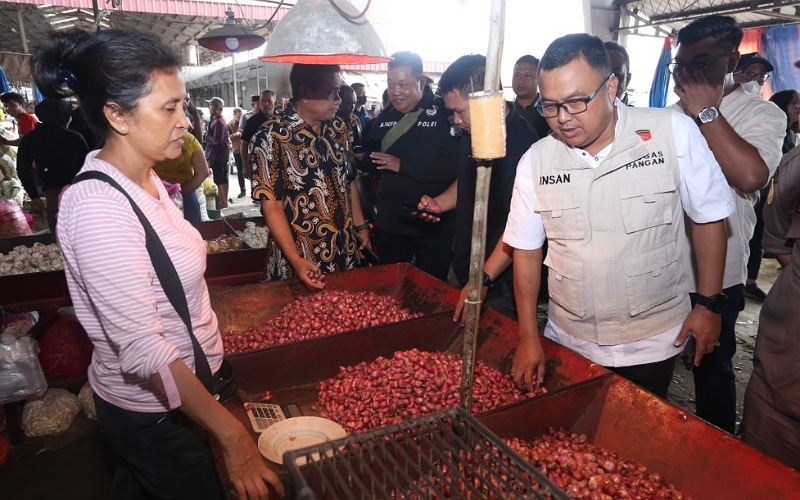 Dalam kegiatan itu, tim mendatangi satu persatu lapak dagangan mulai dari penjual bawang, cabai, daging, ikan beras, minyak goreng, telur dan lainnya.