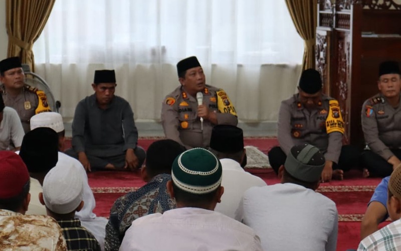 Waka Polres Padang Lawas KOMPOL Sugianto S.Pd,Kasat Intelkam AKP Sahala Harahap,S.H,Kasat Binmas AKP Rahmad Saleh Nainggolan SH,Kasat Lantas AKP Alfian Arbi ,Kasat Samapta AKP M Husni Yusuf,Kbo Intelkam IPDA Feriko Sutanta,Personil Polres Padang Lawas,Tokoh Agama Desa Pasir Jae Berlin Hasibuan,Tokoh Masyarakat Desa Pasir Jae Bangun Hasibuan,Tokoh Masyarakat Desa Pasir Jae Syaqban Hasibuan dan Jamaah Solat Jumat di Masjid Miftahul Miftakkin.
