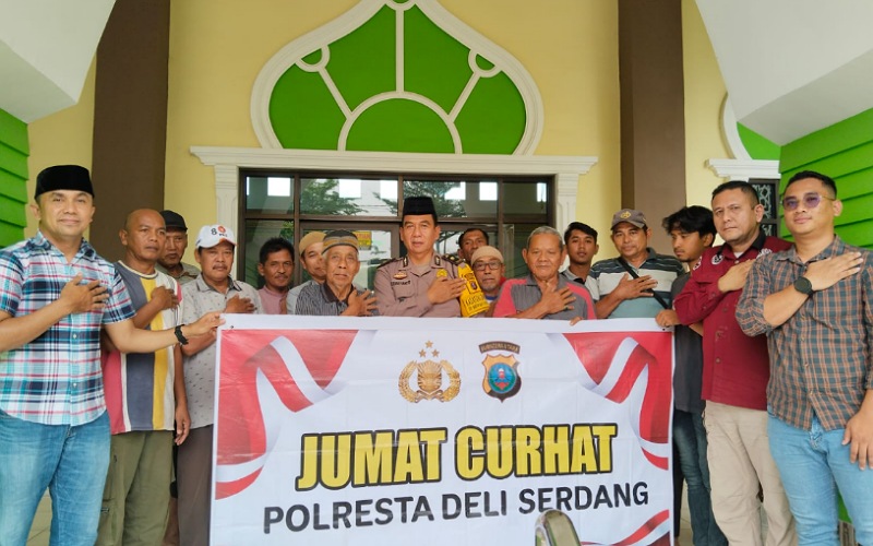 Deli Serdang, Matawaktu.co.id – Dalam upaya untuk mendengar dan menyelesaikan permasalahan yang dihadapi oleh masyarakat, Polresta Deli Serdang beserta polsek jajarannya mengintensifkan kegiatan Jumat Curhat di seluruh wilayah hukumnya. Polresta Deli Serdang yang dipimpin Kabag Log Polresta Deli Serdang Kompol Soedarjanto menggelar Jumat Curhat di Mesjid Nurul Ikhlas yang berada di Desa Bangun Sari Baru, Kecamatan Tanjung Morawa, Kabupaten Deli Serdang pada Jumat (5/01/2024).