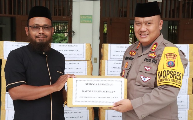 Dalam kegiatan ini, Polres Simalungun juga menyalurkan paket sembako kepada pesantren sebagai bakti sosial dalam membantu meringankan beban masyarakat di tengah situasi pandemi yang masih berlangsung.