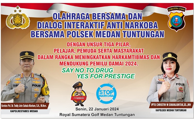 Menurut Kapolrestabes Medan Kombes Pol Teddy Jhon S, Marbun, S.I.K., M.Hum melalui Kapolsek Medan Tuntungan Iptu Christin Malahayati Simanjuntak, S.S., M.H acara ini di laksanakan guna mendukung program kerja Bapak Kapolda Sumut Irjen Pol Agung Setya Imam Effendi, M.Si dan Bapak Kapolrestabes Medan Kombes Pol Teddy Jhon S, Marbun, S.I.K., M.Hum dimana Narkoba adalah musuh kita bersama, terang Christin.