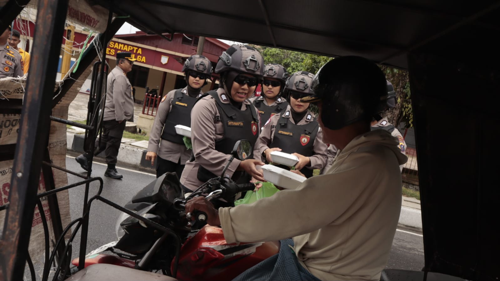Dalam kesempatan ini, Polwan Polres Sibolga secara langsung memberikan nasi kotak kepada para pengendara becak motor yang menjadi sasaran kegiatan. Aksi sosial ini merupakan wujud nyata kepedulian Polri terhadap masyarakat, khususnya bagi para pengendara yang setiap hari berjuang mencari nafkah di tengah situasi ekonomi yang menantang.
