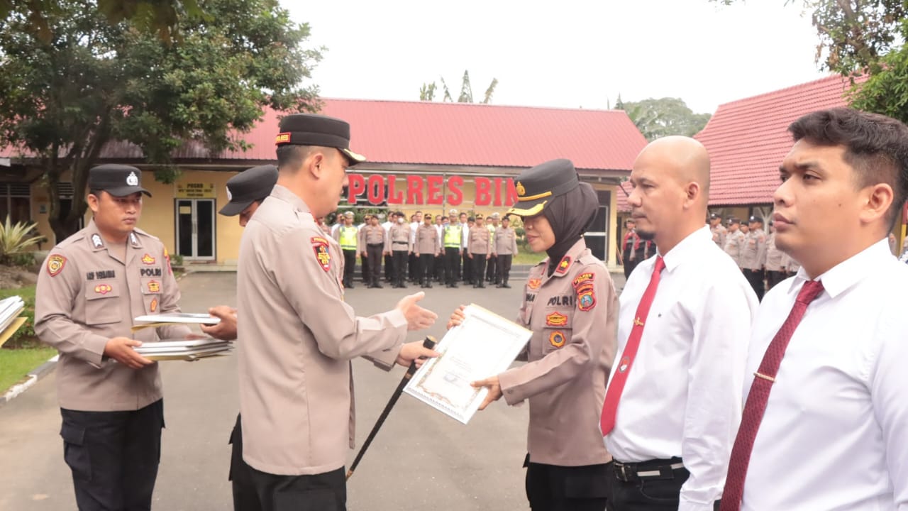 Kapolres Binjai, memberikan ucapan selamat kepada personil yang menerima penghargaan ataupun reward, dengan harapan penghargaan ini dapat dijadikan motivasi bagi personil lainnya dalam melaksanakan tugas sehari-hari sesuai dengan fungsinya masing-masing.