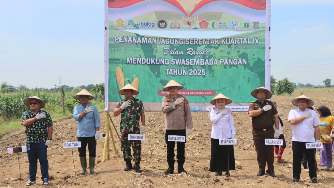 Deli Serdang, Matawaktu.co.id – Polresta Deli Serdang melaksanakan kegiatan Tanam Jagung Serentak Kuartal IV yang digelar secara nasional melalui sarana Zoom Meeting pada Rabu (08/10/2025).di Desa Bangun Sari, Gang Rambutan, Kecamatan Tanjung Morawa, Kabupaten Deli Serdang.