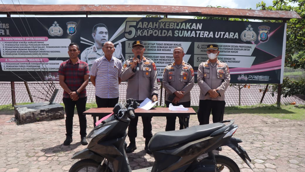 Dalam keterangan yang di sampaikan oleh Kapolres Pakpak Bharat AKBP Pebriandi Haloho S.H., S.I.K., M.Si yang di dampingi Kapolsek Sukaramai AKP Sukanto Berutu S.H., Kasat Reskrim Polres Pakpak Bharat Iptu Charles Manurung S.H., Kasi Humas AKP Amron Simanullang S.H., Kanit Reskrim Polsek Sukaramai Ipda Franky Pelawi S.H dan Anggota Unit Reskrim Polsek Sukaramai, Kapolres mengatakan Kejadian curanmor ini menimpa korban an. Windriyani Berutu, yang terjadi pada tgl 26 September 2025 sekira pukul 03.00 wib, dimana sebelumnya sp. Motor milik korban merk Honda No pol BB 2671 ZB, dengan Nomor rangka MH1JM8226RKO92792 dengan Nomor Mesin JM82E – 2093600 warna Lis hitam di pinjam oleh adik kandung Korban an. Sastra Efendi Berutu kemudian membawa Sp motor tersebut ke sebuah warung di Desa Buludidi Tanjung Mulia Kecamatan STTU Jehe, sekira pukul 03.00 wib Sastra Efendi Berutu keluar dari warung namun sp motor milik kakaknya tidak berada di depan warung tersebut, akhirnya dirinya pulang ke rumah dan melaporkan kejadian tersebut kepada Kakaknya.