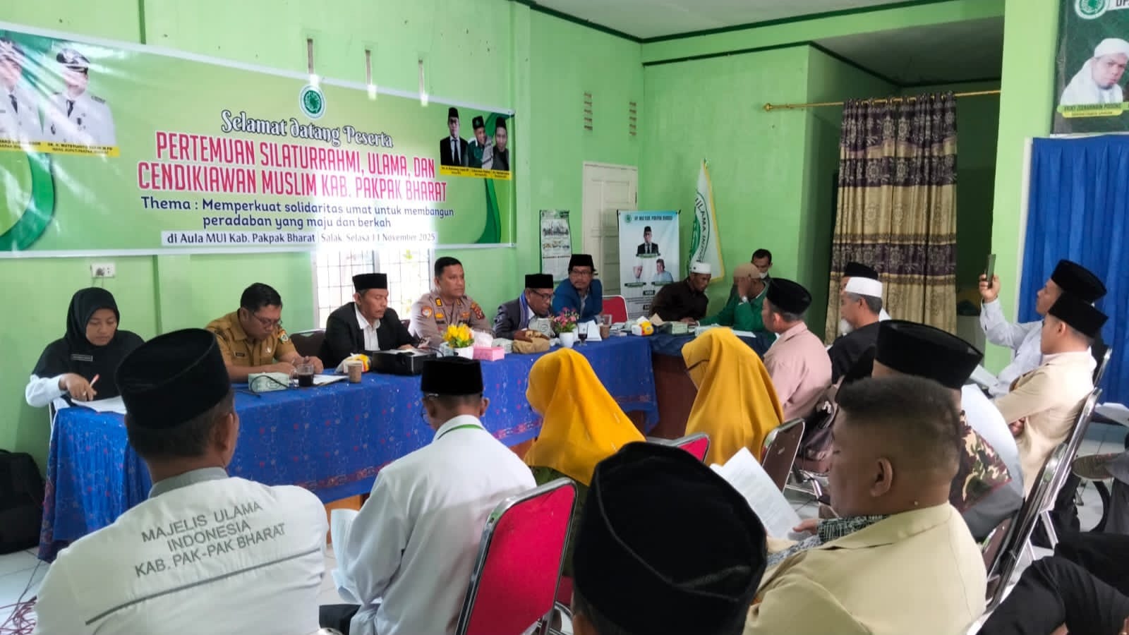 Salak, Matawaktu.co.id – Kapolres Pakpak Bharat AKBP Pebriandi Haloho S.H., S.I.K.,M.Si di wakili oleh Ps. Kabag Ren AKP Suhaily Amri Hasibuan S.H., M.H, menghadiri acara Pertemuan dan Silaturahmi Ulama dan Cendikiawan Muslim Kabupaten Pakpak Bharat, Selasa 11 November 2025 sekira Pukul 09.30 wib bertempat di kantor MUI Kabupaten Pakpak Bharat.