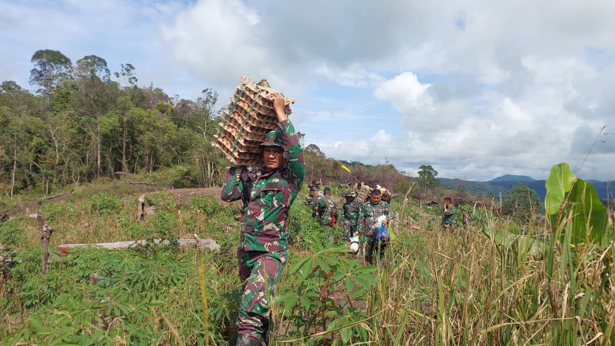 Tapanuli Tengah, Matawaktu.co.id – Pendorongan logistik dari Yonif 122/TS dan Yonif 125/Simbisa sebanyak 40 orang melaksanakan pergerakan dengan berjalan kaki menuju Dusun Lapan Lombu, Kelurahan Nauli, Kecamatan Sitahuis, Kabupaten Tapanuli Tengah, Sumatera Utara. Sabtu (6/12/2025).