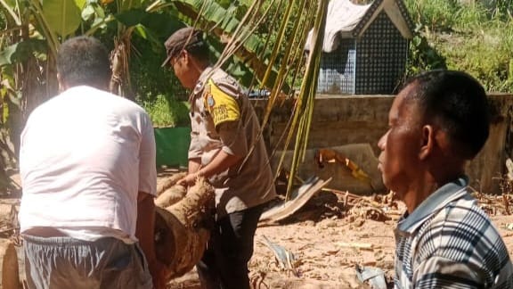 “Bhabinkamtibmas turut prihatin melihat lingkungan yang dipenuhi gelondongan kayu akibat banjir bandang. Karena itu, bersama Babinsa dan warga, mereka bergotong royong membersihkan material tersebut demi keamanan dan kenyamanan masyarakat,” ujar AKP Martua Sinaga.