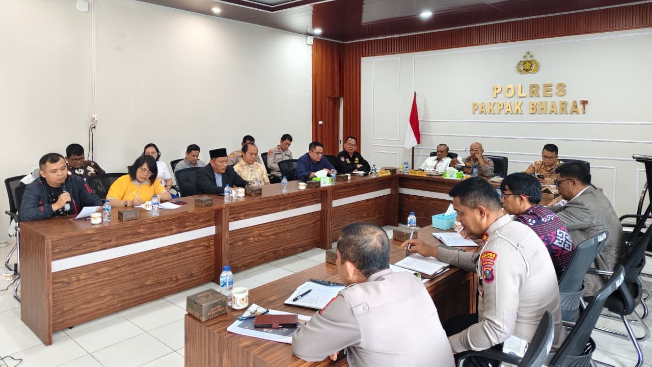 Salak. Matawaktu.co.id – Polres Pakpak Bharat melaksanakan Rapat Koordinasi Lintas Sektoral Jelang Nataru 2026 Dalam Rangka Ops Lilin Toba dengan mengundang Instansi terkait, Jumat 12 Desember 2025 sekira pukul 10.00 s/d 11.30 wib bertempat di aula Catur Prasetya Mapolres Pakpak Bharat.