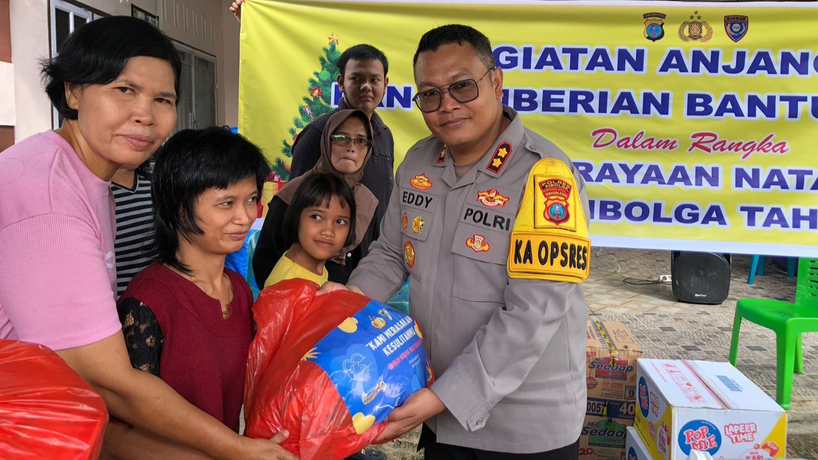 Dalam kegiatan tersebut, Polres Sibolga menyalurkan bingkisan Paket Natal Polri kepada anak-anak panti asuhan dengan total bantuan berupa 45 paket bingkisan Natal, 30 karung beras @5 kilogram, 10 dus mi instan, 10 dus Pop Mie, 4 dus sarden, 4 dus bubur susu, serta 2 dus biskuit Roti Hatari.