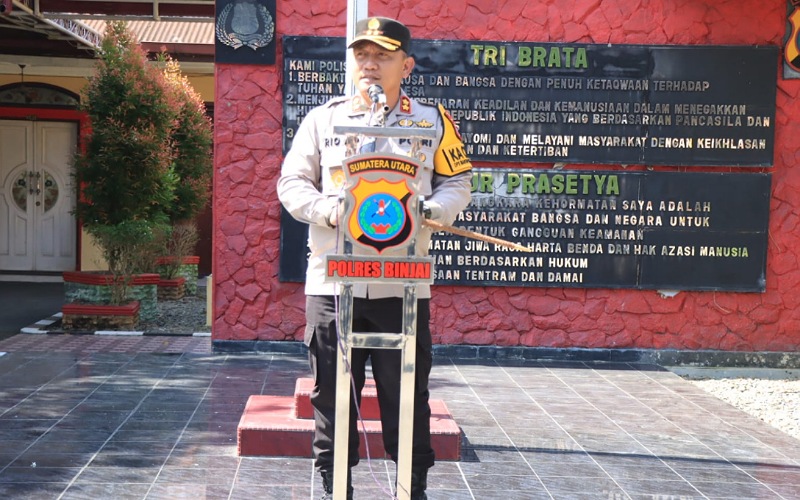KAPOLRES BINJAI CEK KESIAPAN PERSONIL POLRI YANG TERLIBAT LANGSUNG DALAM PENGAMANAN DI TPS