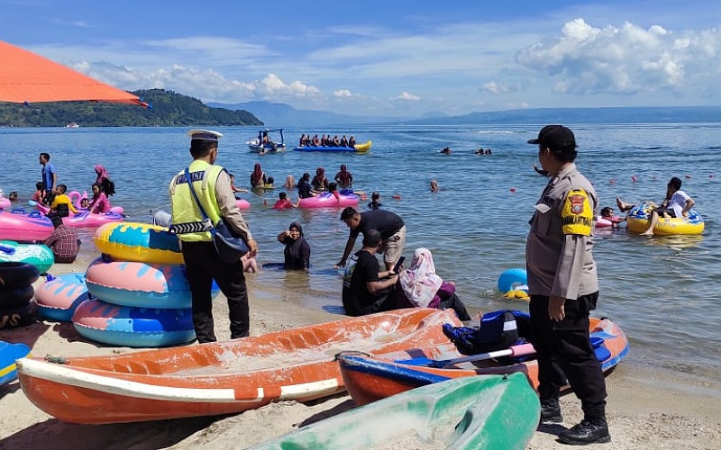 Hari Kedua Libur Tahun 2024, Polres Toba Patroli Ke Obyek Wisata Pantai