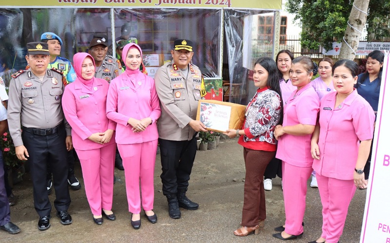 Ketua Bhayangkari Cabang Humbahas melaksanakan kunjungan ke Pos Pengamanan