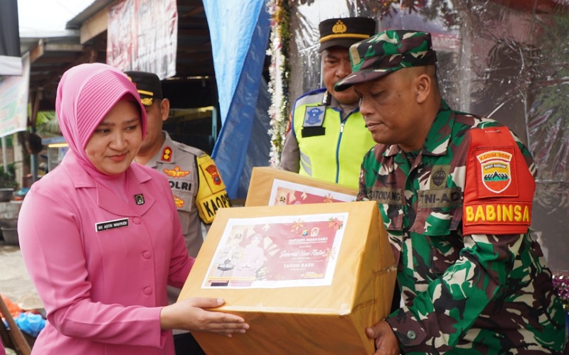 Kapolres Tanah Karo Bersama Ketua Bhayangkari, Berikan Bingkisan Tali Asi ke Personil Pos Pelayanan dan Pengamanan Ops Lilin