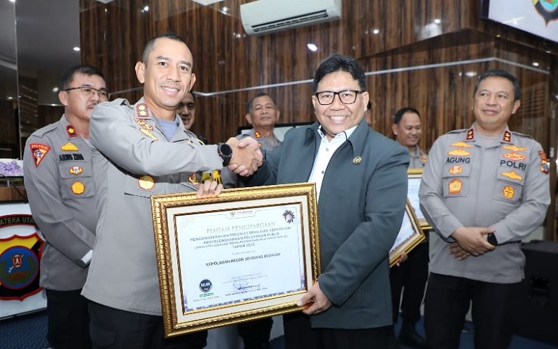 Raih Opini Kualitas Tertinggi, Kapolres Sergai Terima Penghargaan dari Ombudsman RI
