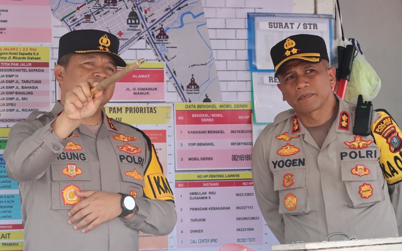KAPOLRES PEMATANG SIANTAR DAMPINGI KAPOLDA SUMUT CEK POS PENGAMANAN IV JL SUDIRMAN